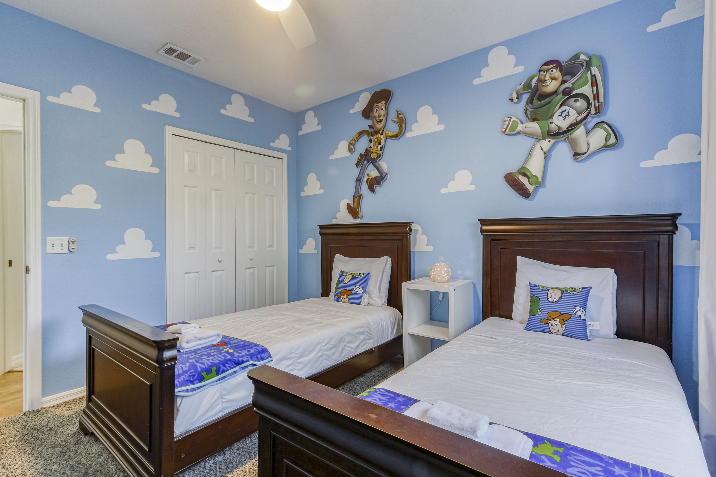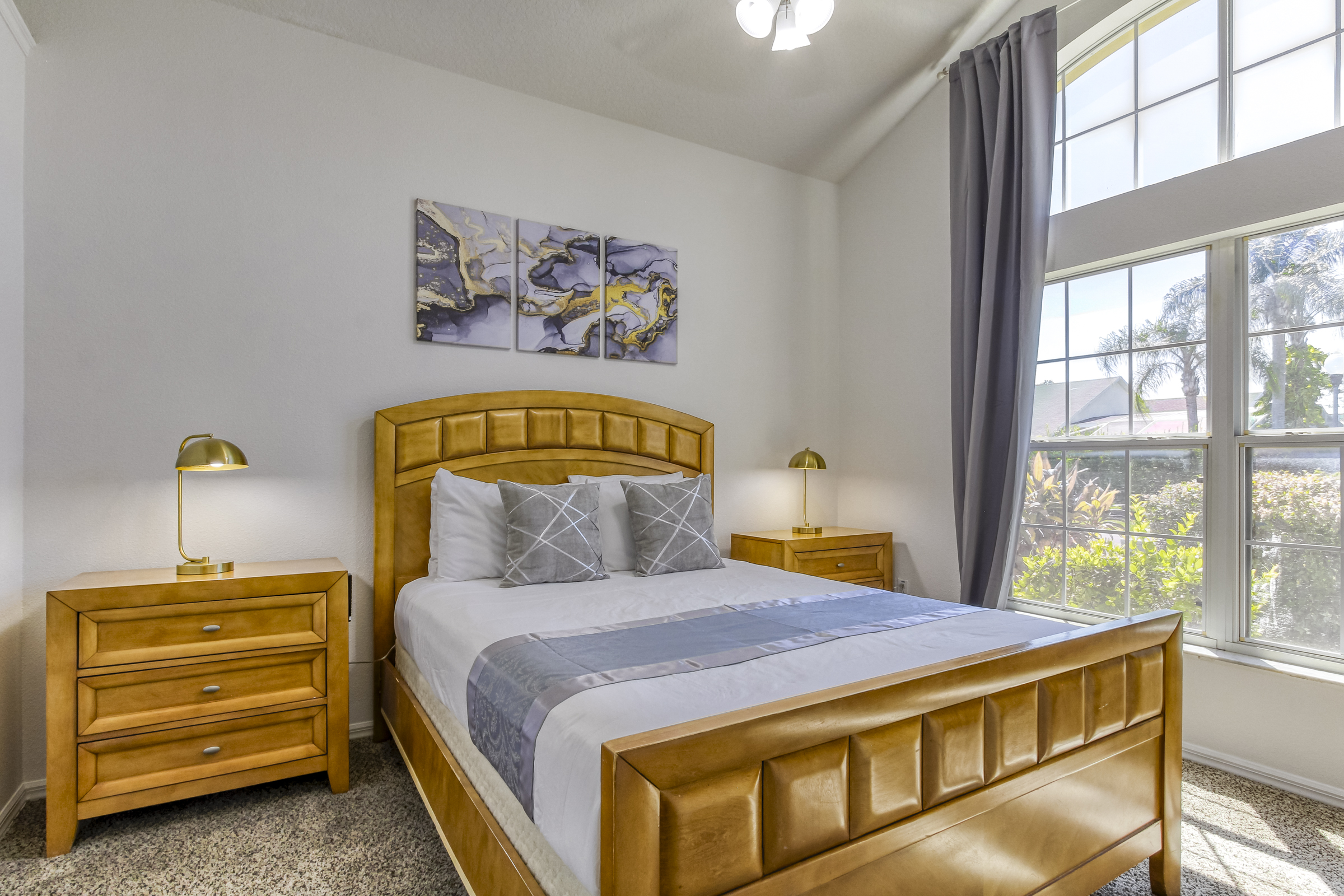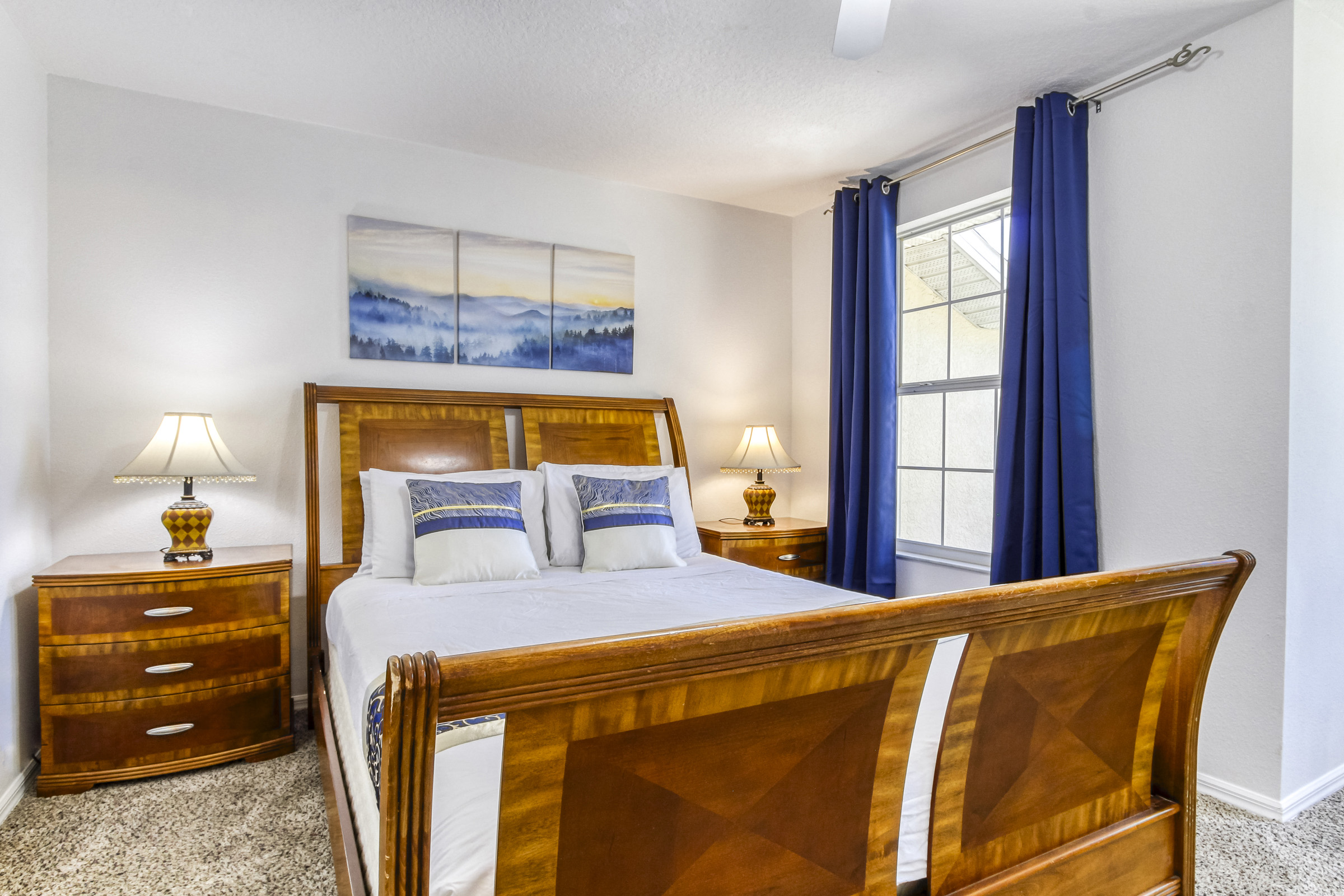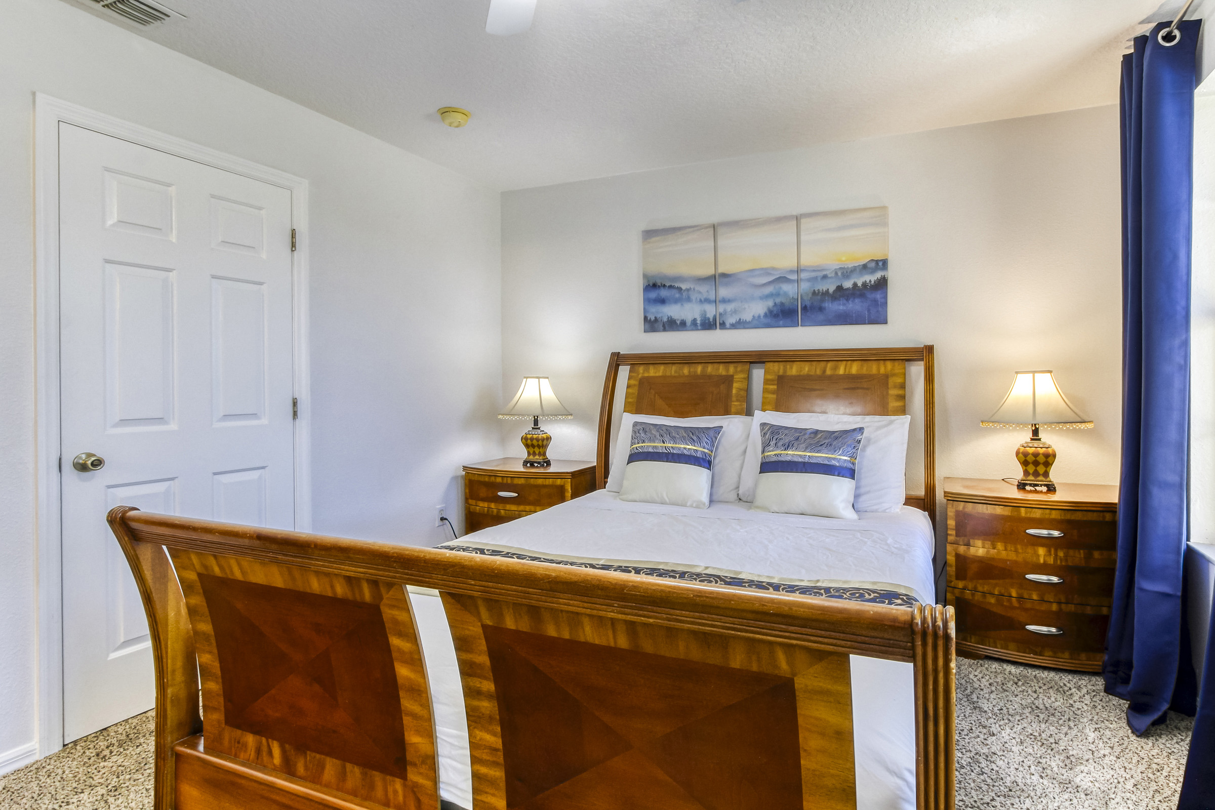 - Amenities: Bathroom featuring a separate bathtub, Ceiling fan, Dehumidifier, Direct exit to the pool area, En suite bathroom with a bathtub and walk in shower, Flat-screen TV with Roku, Mini crib, Newly installed Zinus mattress, Private backyard with heated pool, Private pool, Walk in closet with hangers