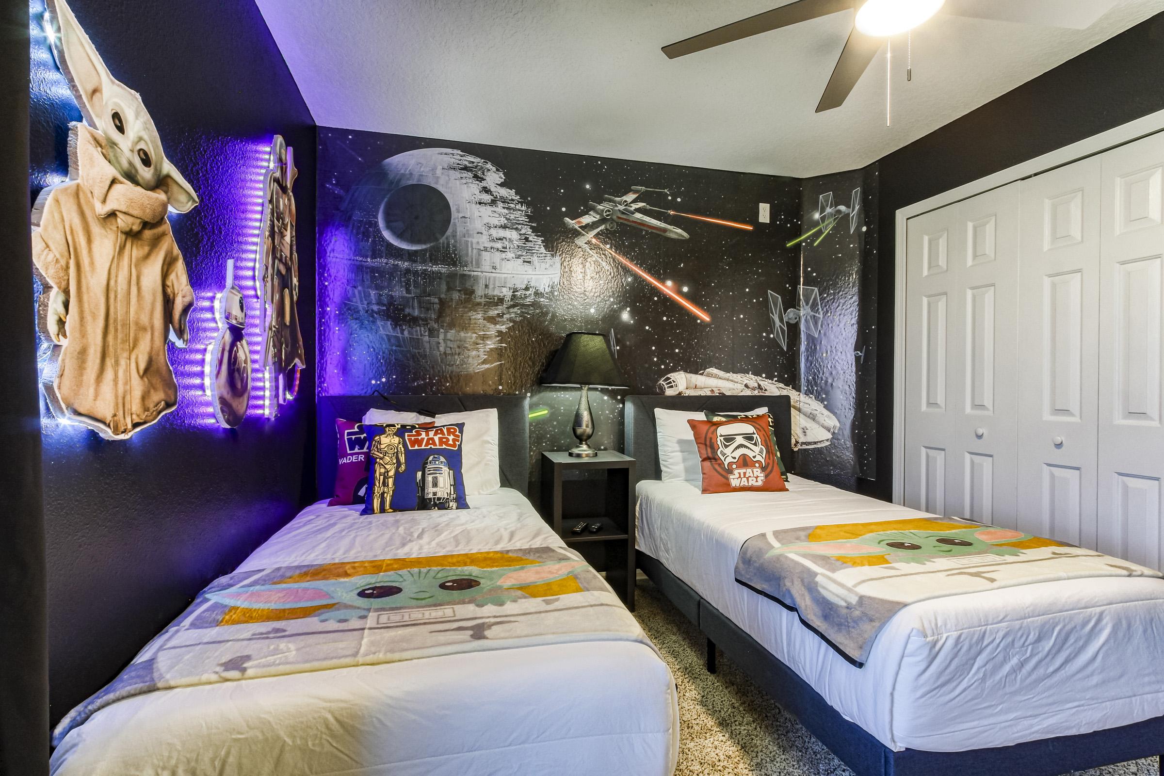 - Amenities: Blackout curtains, Ceiling fan, Flat-screen TV with Roku, Wireless internet access