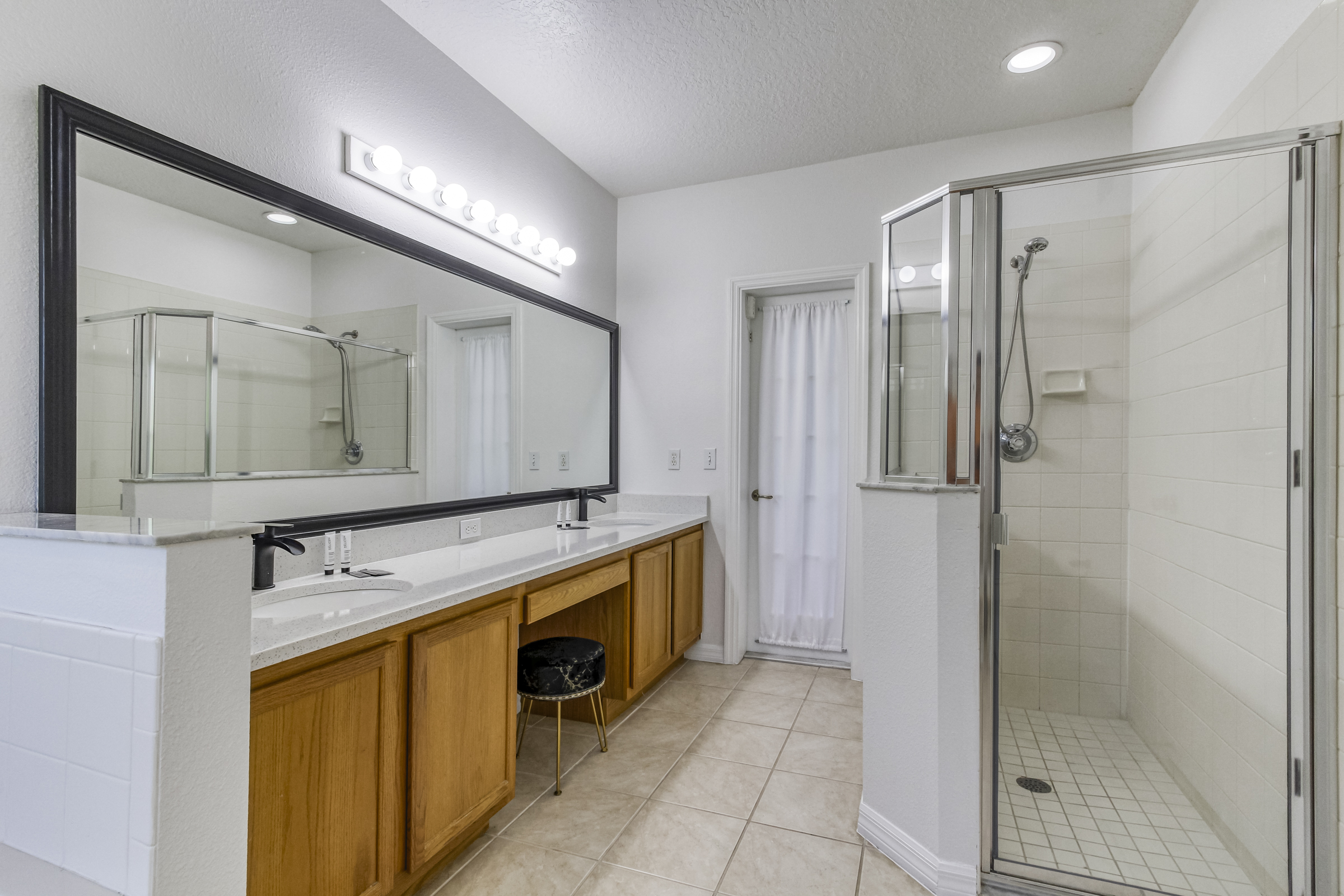 • Amenities: Bathroom featuring a separate bathtub, Ceiling fan, Dehumidifier, Direct exit to the pool area, En suite bathroom with a bathtub and walk in shower, Flat-screen TV with Roku, Mini crib, Newly installed Zinus mattress, Private backyard with heated pool, Private pool, Walk in closet with hangers